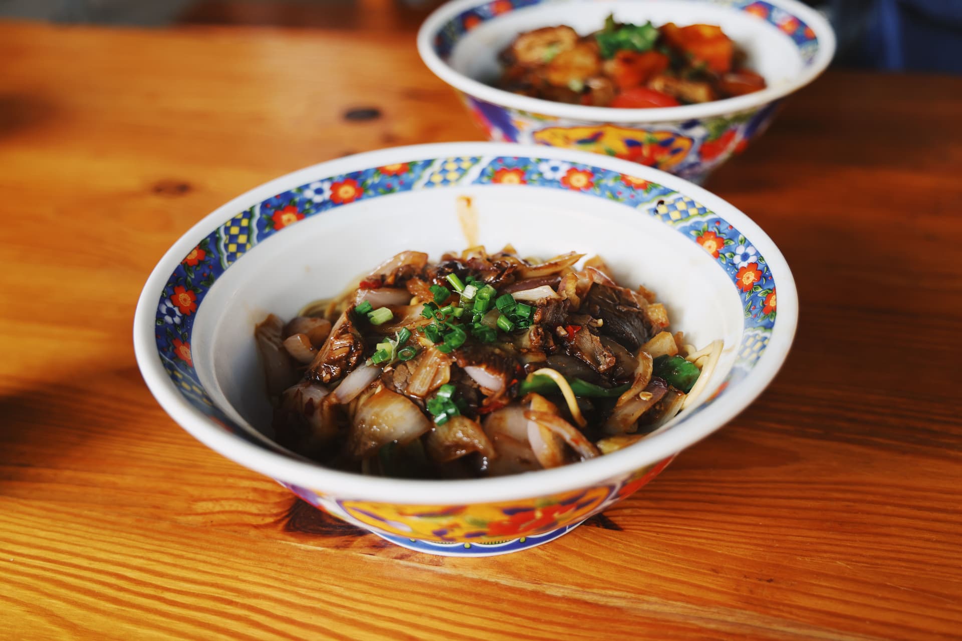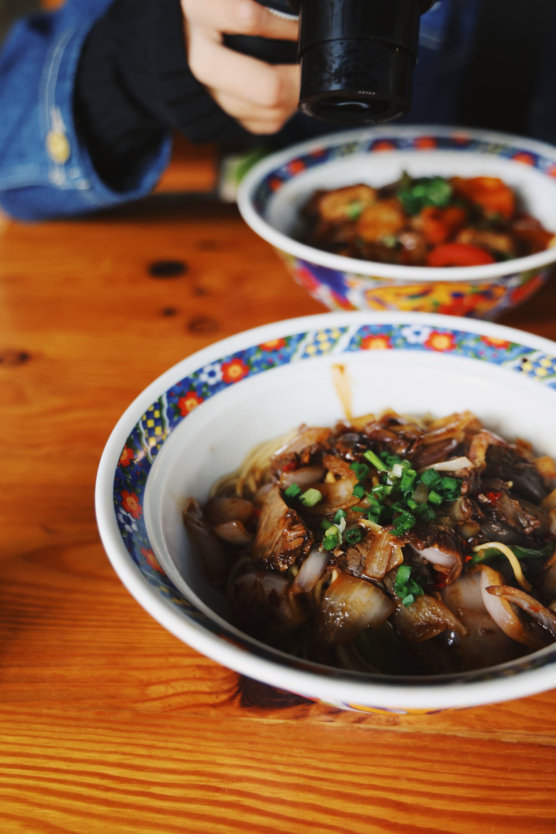 The Grandma Noodle Shop is also their own house. There are only a few tables in the yard, and the road in front of the small shop is under construction, which is a bit noisy.