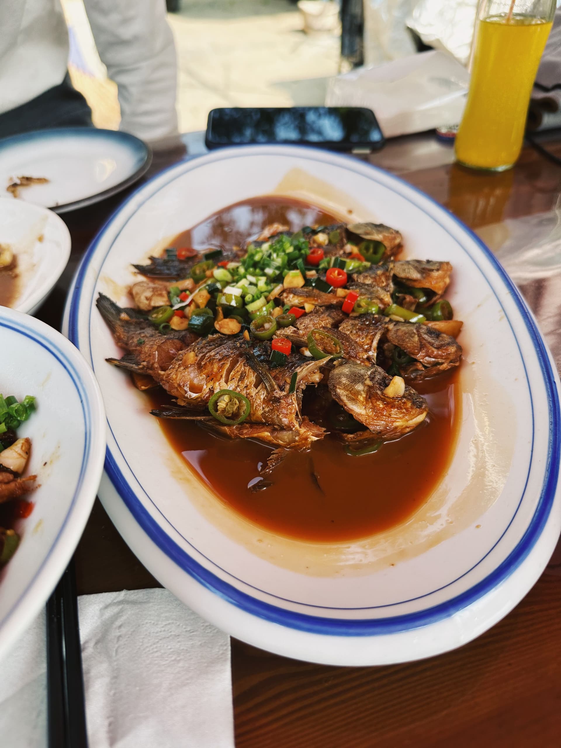 Overall, the atmosphere and ingredients were pretty good. I recommend ordering the small crucian carp and stir-fried chicken with vinegar. These two dishes, paired with a little rice, are almost perfect. Besides food, they also have their own tea leaves. If you like tea, you can order some and sit for a while. It's especially suitable to go in the afternoon. The small courtyard basks in the sun, making you feel incredibly lazy.