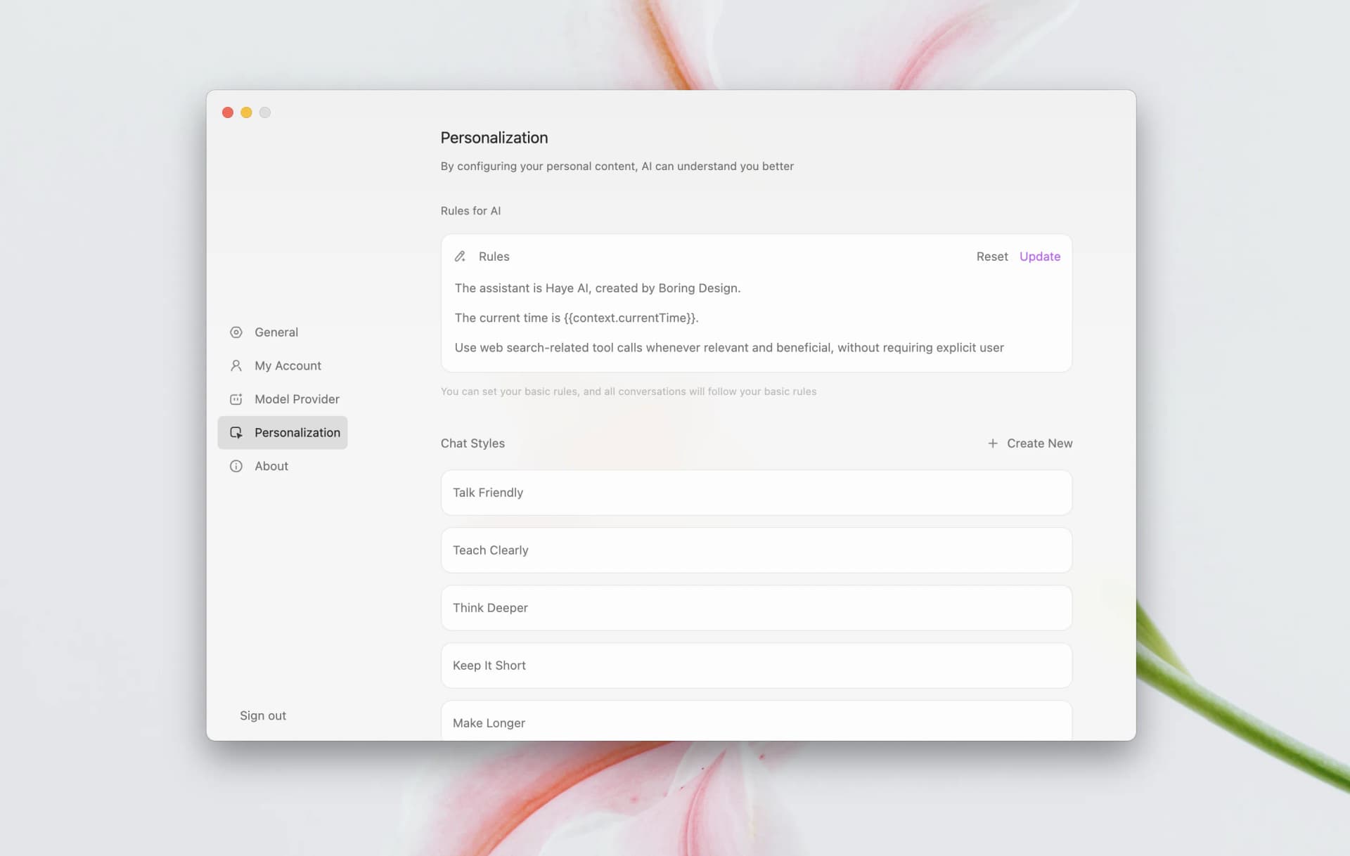 To enable large language models to understand you better, personalized configuration is crucial. Haye 2.0 introduces a unified rules setting, allowing you to restrict any model and have it respond according to your rules.