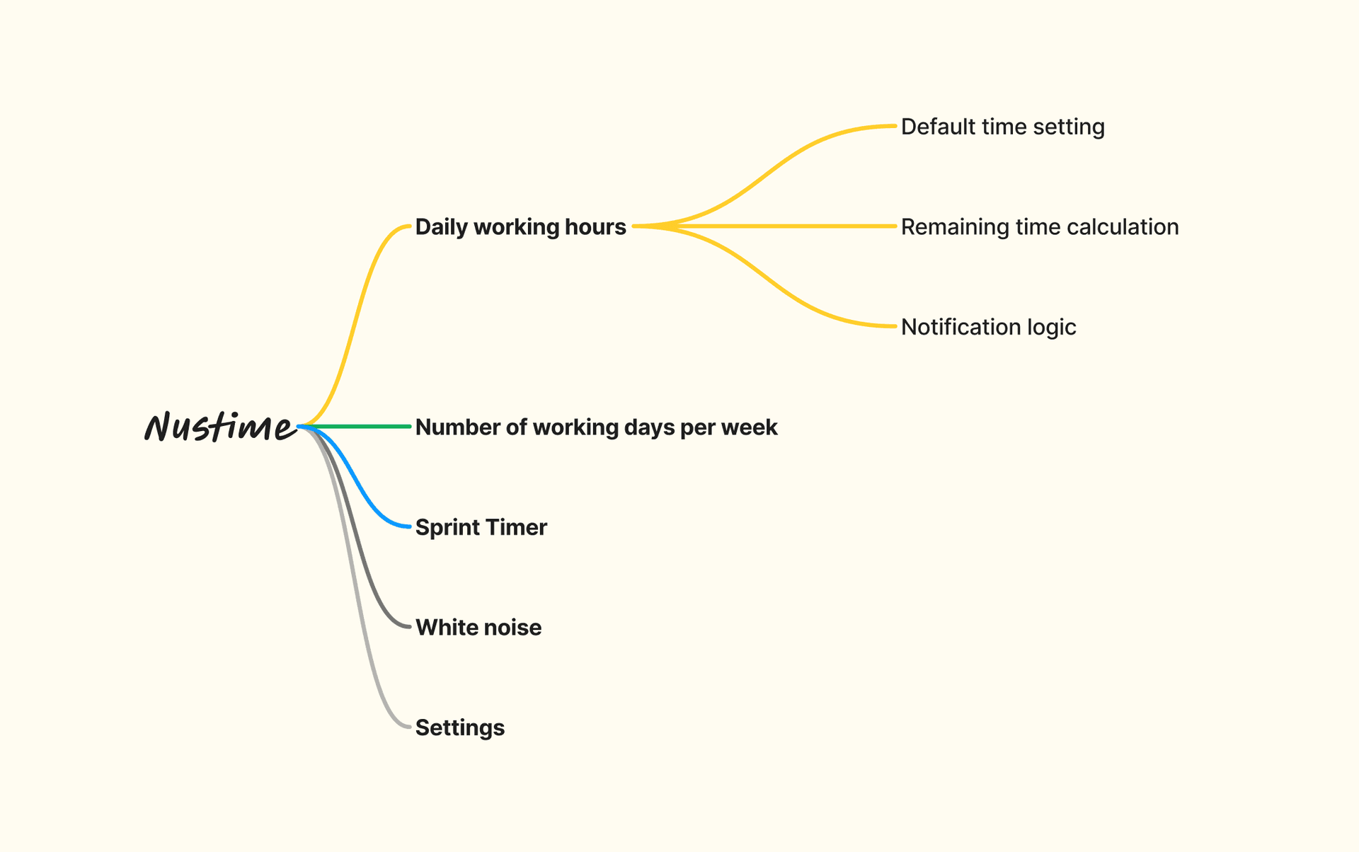 Break down the App's features into small parts, like Nustime can be divided into: