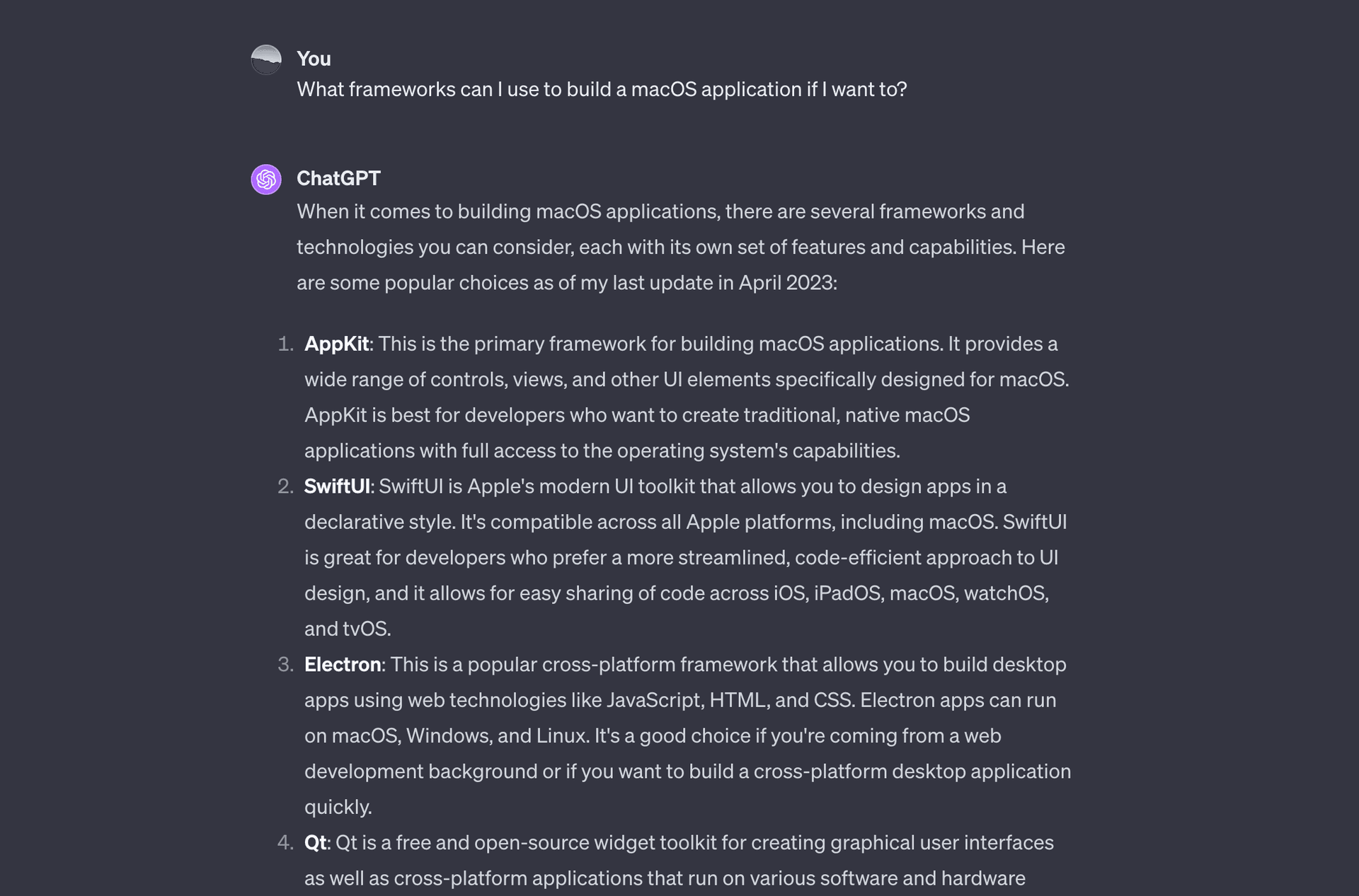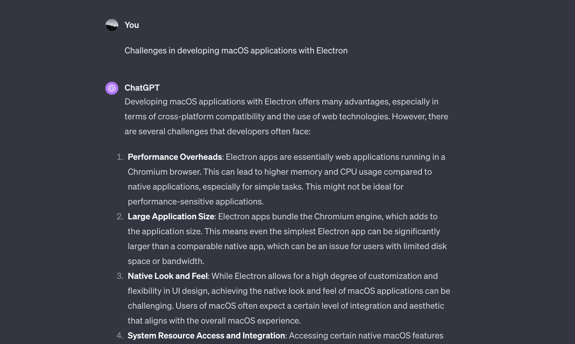 For instance, I once tried to guide it to help me change the Menu Bar icon in an Electron App, but it told me that Electron does not support this feature. However, when I checked Electron's official documentation, I found that it was feasible through Tray Icon. At that moment, I realized that I needed to tell ChatGPT the correct approach for it to give me the answer I needed