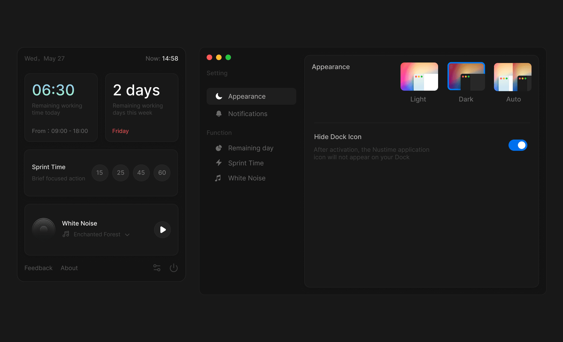Take the Nustime App as an example. Its initial intention was simple: to calculate the remaining work time each day or week to help improve efficiency. On this basis, I added other features to enhance work focus